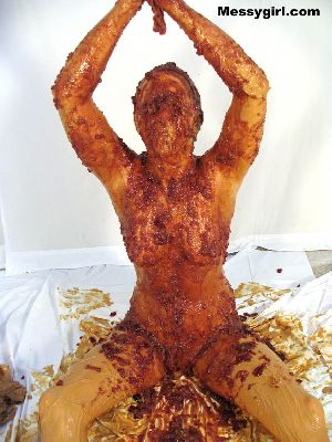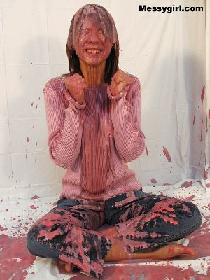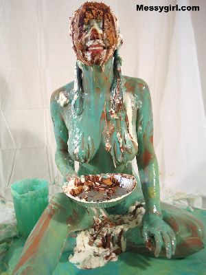 Amber is in her new sweater, skirt and boots as she gets the full messygirl treatment! She ends up nude and extremely messy head to toe!