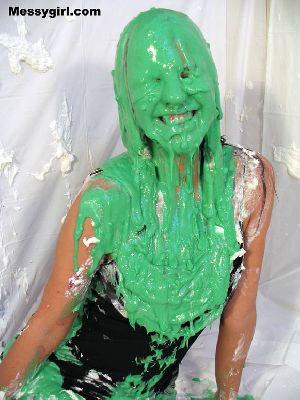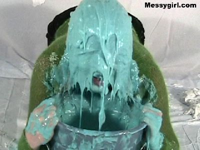 Sexy Lexi has some messy slime and pie fun in her tank top and shorts. She even dunks her head in the slime! She ends up topless!