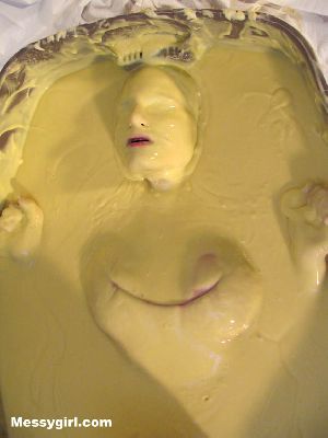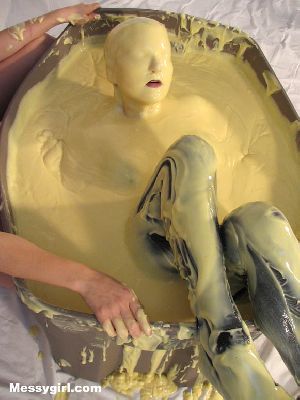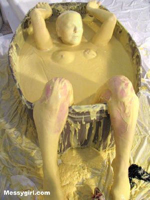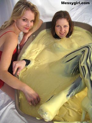 Lia and Amber take a bath in 40 gallons of vanilla pudding! Both girls are submerged in the thick slippery mess! Clothed to nude!