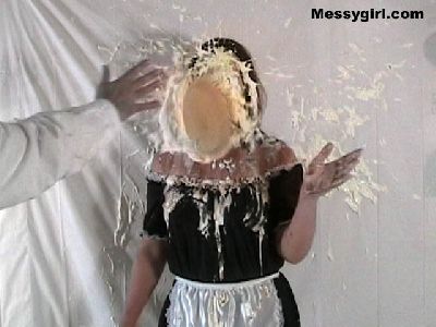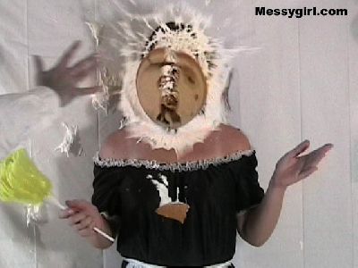 Linda is dressed as a maid when she is pied and covered in pudding! Sara walks in and complains to Linda. So Linda gives it to her full force!