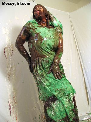 Sexy Kobe does her first shoot for us. She is in her black dress as she gets the full messygirl treatment. She ends up nude and sloppy!