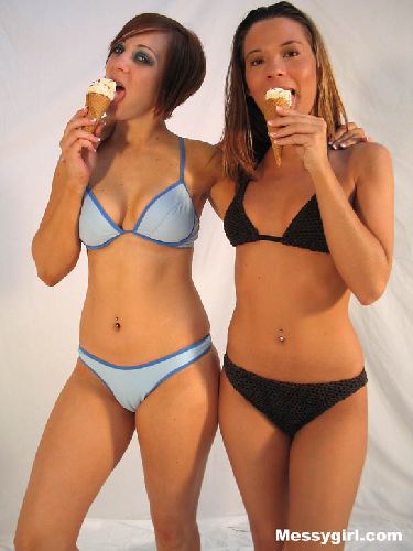 Nikki and Allison make each other into sexy desserts. Allison is made into a hot fudge sundae and Nikki is made into a banana split! Both girls go topless and cover each other with the left over mess on the floor. Very messy and sexy!