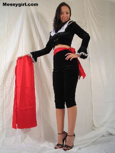 Lexi is in her matador outfit as she is pied and slimed. She goes topless and even dunks her head in a bucket of slime! Total coverage!