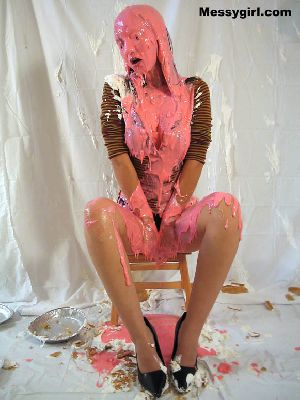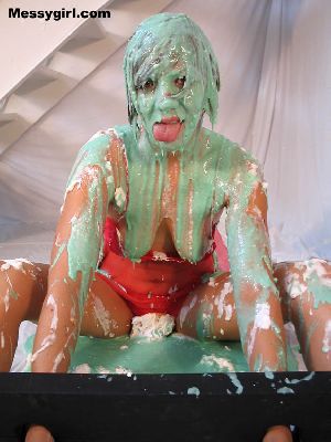 Sexy Lexi is pied, slimed, head dunked and goes face first into a cake! Very messy and sexy! Total coverage!