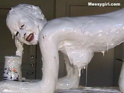 Sexy Nikki is nude as she covers herself head to toe in black paint. She then tops that off with white and lime green! Very freaky and sexy!