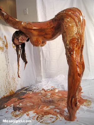 Amber is in her sexy mini dress and heels as she covers herself in molasses, slime and pies! Clothed to nude!