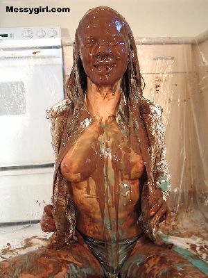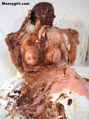 Sexy Liz is in her pvc dress, stockings and boots as she takes a bath in 35 gallons of sticky oatmeal. She ends up nude and covered head to toe in the slop!