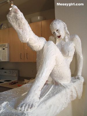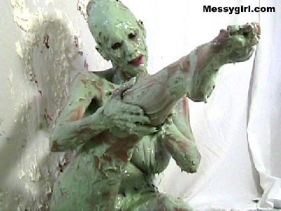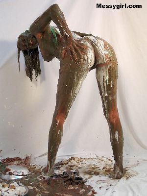 Liz is nude as she is pied with sloppy cream pies all to her face. She rubs the mess all over her sexy body!