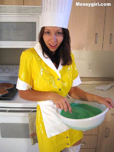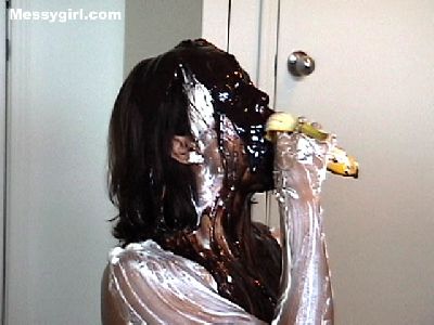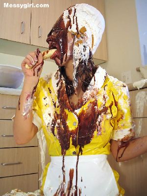 Lexi is dressed as a sexy chef. She is covered in pies, 3 kinds of batter and chocolate syrup. Wait until you see what she does with a chocolate covered banana! Total head to toe coverage!