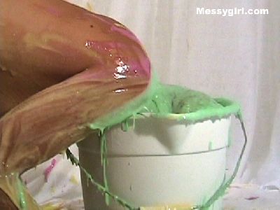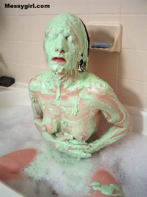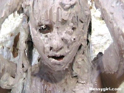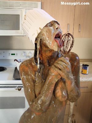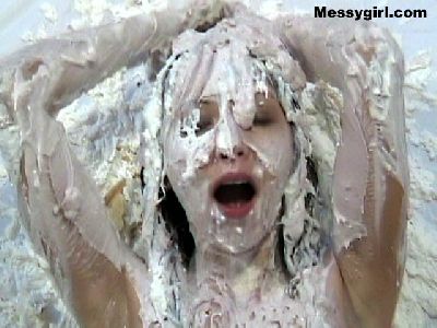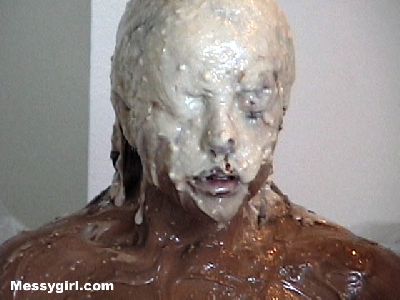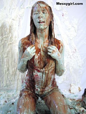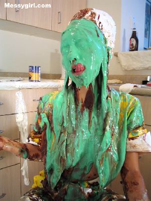Amber gives newcomer Madison the messygirl spa treatment. Madison is covered in pies, chocolate batter and blue slime. Amber also joins her for some messy play time!