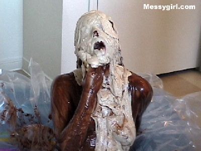 Lexi is covered in molasses, syrup and pies