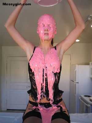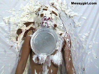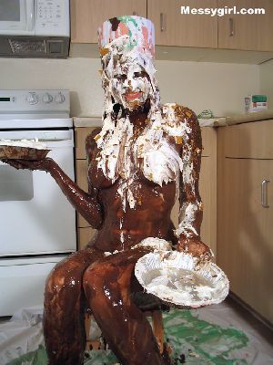 Nikki is in a sexy tight dress, garters, stockings and heels before she does her self wamming with pies, chocolate batter, melted ice cream and green slime. Clothed to nude and so very sexy!