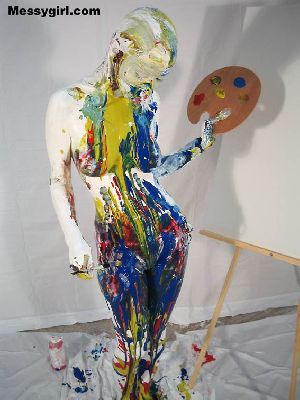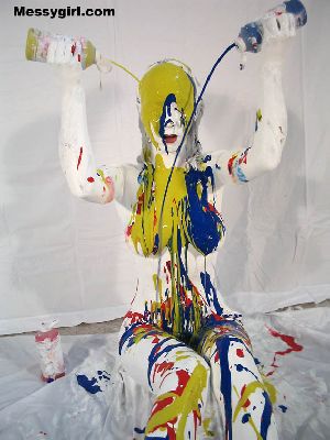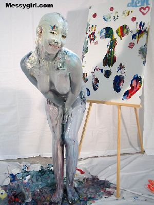 Lexi is in her thong bikini as she becomes a human canvas in multi-color paints. She then smears her sexy body on a clean canvas!