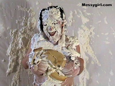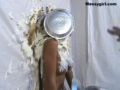 Angie is in her bikini as she is covered in ingredients for a banana split with a few pies thrown in. Wait until you see what Angie does with the bananas! Head to toe coverage and topless!