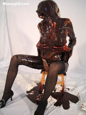 Messygirl starts out in her silk robe, black panties and bra. She is hit with cream pies and chocolate syrup poured over her pretty face.