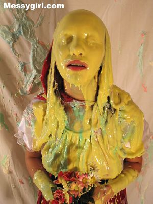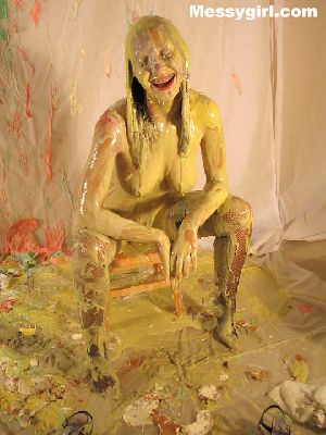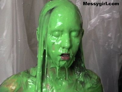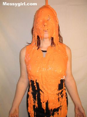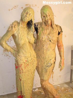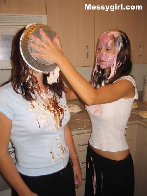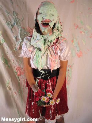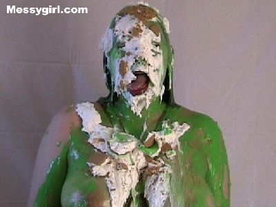 Veronica gets the full Messygirl treatment. She is covered in pies, green slime, pudding and chocolate syrup. She also sits on a pie!