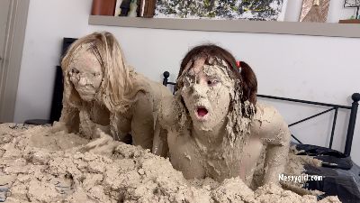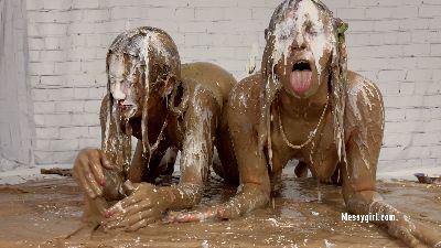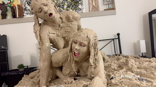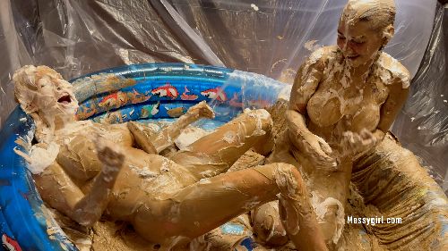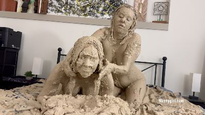 Zoey and Tracy are playful and naughty in a bed of wet clay