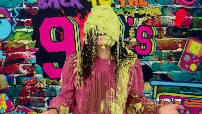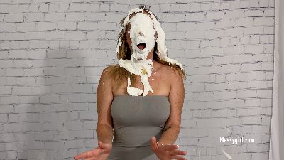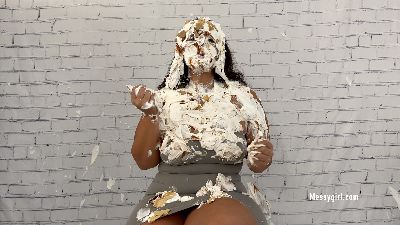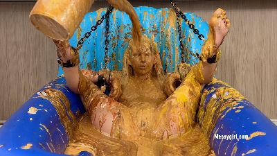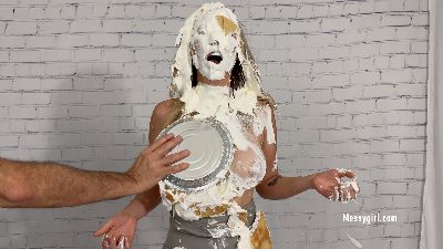 Holly returns and this time she shows off her naughty side. She is tied to a headboard as she is pied, she then gets free and continues to get herself messy in a very seductive way.