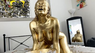Sexy MILF Sofia is covered in gold paint and then masturbates until she cums. Vert hot stuff from this young mom.