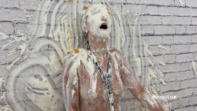Dakota wants to celebrate her 19th birthday in style. So we arrange to have her made into a human birthday cake with Penelope on hand to prepare it. Dakota is stripped nude and put in the bondage shackles while on all fours. She is then covered head to toe in buttercream frosting and other decorative treats.
