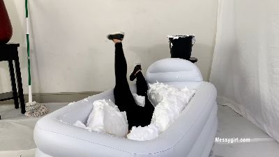 Zoey returns as the clumsy housekeeper. This time she tries to clean out a tub filled with gooey cream foam.