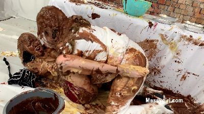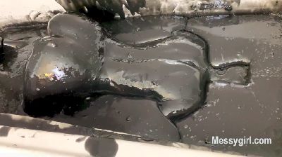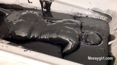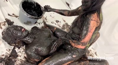 Zoey and Penelope go at it with some extreme black grease wrestling. Both girls are totally unrecognizable by the time they are done.
