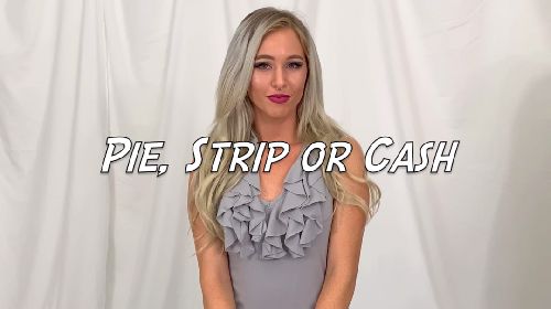 Zoey wants the chance to win $100 by playing Pie, Strip or Cash. To win the cash she needs to select random notes in a hat with pie and strip printed on them. Only one note has cash and she must select it to win and end the game. Unfortunately for her, the cash note was never in the hat.