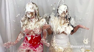 Amy and MewMew are well dressed as they play the game Pie Trivia. Each girl is asked a question and must get the correct answer or they will be pied. Needless to say, there are many pies thrown due to the fact the questions are very difficult. You will love the reactions from both girls as they get their faces creamed with pies. They even are asked to show their boobs and are happy to do it. After the girls are covered in pie slop, they take a shower together. You also get bonus footage as well.