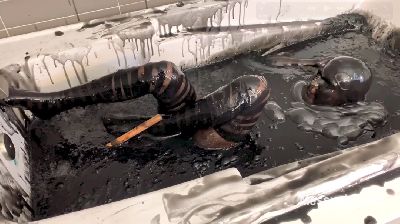 Realtor Sabrina is showing a home she is selling, but is upset to find a bathtub filled with black sludge due to a plumbing issue. She needs to drain it, so she grabs a plunger and attempts to drain the tub. Unfortunately, while she tries to do this, she falls back and face first in the disgusting black sludge.