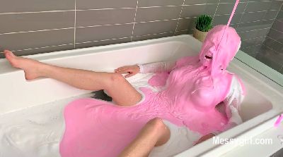 Sexy Zoey is in a see-through white leotard as she gets in the bathtub. She then proceeds to dunk and submerge herself. You will enjoy the creative way she does this. The soaked leotard leaves nothing to the imagination as it goes transparent. Zoey then gets comfortable for a nice cream sliming. She then submerges herself once again and repurposes the slime on herself before she takes a shower. Hot stuff!