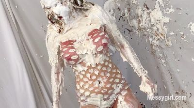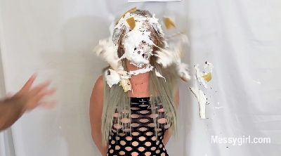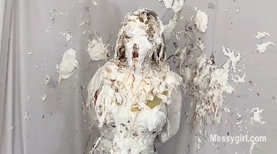 Fan favorite MewMew from the UMD makes her Messygirl debut. So it's only fitting that Amy dishes out the mess on her. Amy is in a sexy leather dress and MewMew is in lingerie and white stockings. Amy doesn't hold back as she pies and slimes MewMew into oblivion.