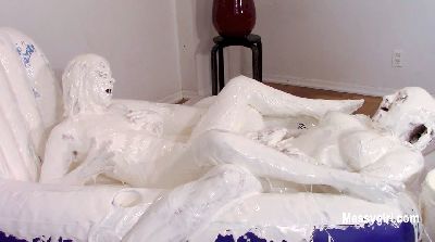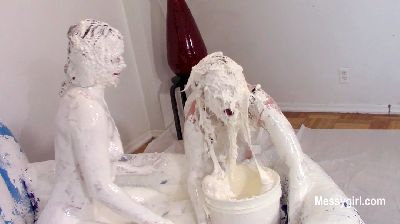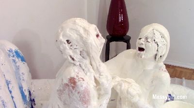 We break out our new toy the "WAM Chair" for Amy and Misty to use as they play in 10 gallons of marshmallow fluff. Both girls are in fishnet outfits and they start to cover each other in the sticky fluff. Soon the outfits are peeled off and that creates a cool fishnet pattern on their bodies. The girls go all out as they dunk their heads in the large containers of fluff. By this time it's hard to tell who is who? The girls then get naughty as they rub their pussies together in the sticky mess. You get the added bonus of the girls washing off in the shower.