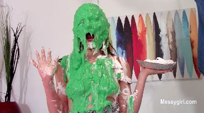 Penelope returns after taking a year off to pursue a glamour modeling career. It turns out that she missed being a Messygirl and asked if she could come back. We were more than happy to have her get messy for us again. So we introduced her to our new messy boat to help her get back in the swing of things. She starts out wearing a tight dress and open toe heels. She takes off the shoes and steps into the messy boat. When she is seated and relaxed, she tells Mr MG to let her have it. She is then greeted with pies hard to the face and endless slime pours over the head. She is loving it! She then takes off the dress and rolls around in the slop that has collected in the boat. You get a nice view of her exposed sloppy ass and pussy as she rolls around. She can't get enough of the slop as she pours it over her head continuously. Welcome back Penelope!