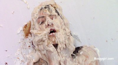 Lucy is doing a survey for the Mother Jones Cream Pie Company. She is all smiles as she begins the survey. When she asks the customer if they like Mother Jones Cream Pies, she is bombared with pies to the face. She just stands there and takes the onslaught. Her tits are exposed and the pies keep coming, followed by a pour of batter and pie sloop mix. The customer makes sure to rub the mess all over Lucy's tits and face. She then becomes turned on and gets on the floor and plays in the slop.