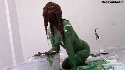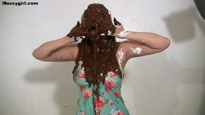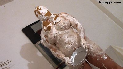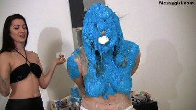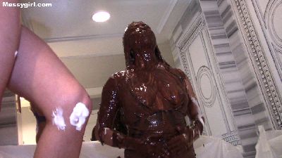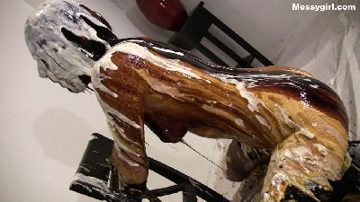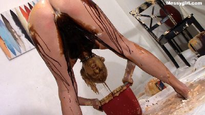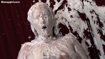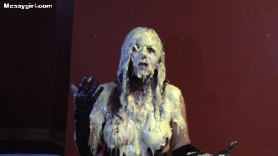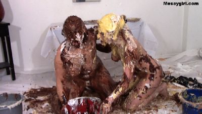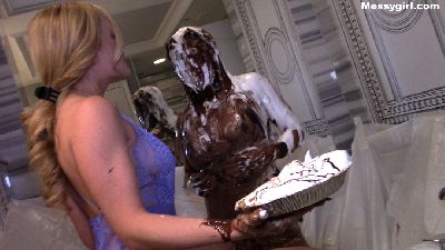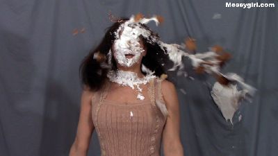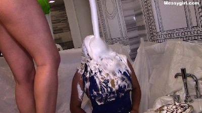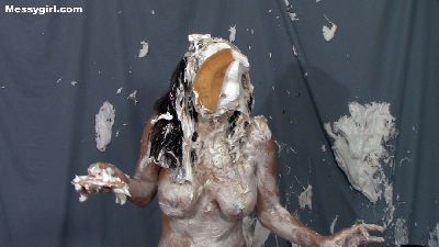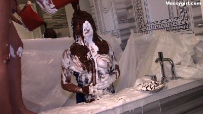 Husband sacrifices his Asian wife, Katy, to Amy, fulfilling his dirty desire for lesbian fun. Amy pies this cutie till she loses count and submerges her beautiful face in buckets of chocolate batter. Amy then pours the batter over Katy`s head and rubs butter cream on her tits and lips. Before you know it, Katy is totally covered head to toe in the mess. Amy finishes her off with a cream slime pour. Katy also gets spanked and has her hair pulled, making her an official MessyGirl.