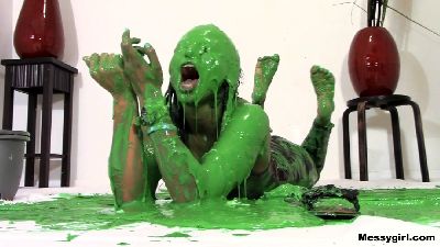 Alana wants to end her date by giving her guy a blow job. So she gets on her knees and opens her mouth. She is ready to take him, but instead, gets a face full of green slime. She is shocked and thinks she just got the messiest facial she ever had. She then discovers it's slime and is confused. She then gets even more slime to the face. This is followed by a thown pie to her face that knocks her back on her ass. While still down, she gets more slime to the face.