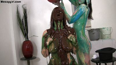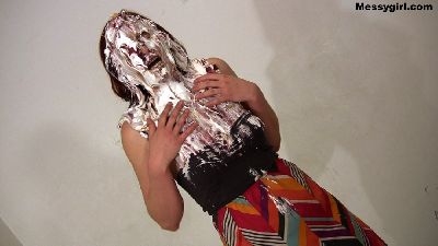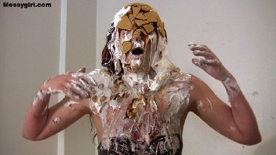 Amy is well dressed and wearing glasses as she wants to prove that even classy girls can get very raunchy. She has a bucket sloppy oatmeal and a bucket of chocolate to do the damage. She crawls to the sloppy oatmeal and dunks her head over and over again in it. Her glasses are still on when she does this. She then rubs the slop all over her dress and body. This is followed with head dunks in the chocolate. It mixes well with the oatmeal as she rubs it all over herself. She then strips nude and plays in the slop on the floor. After one last bucket pour of slop over her head, she plays with her pussy until she cums.