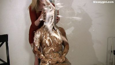 Christina goes all out as she slathers herself head to toe in pies, slime and chocolate.