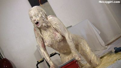 Sexy redhead Emma is nude as she covers herself head to toe in sticky clay. She makes sure you get a nice view of her pussy and ass as she slathers herself. By the time she is done, she looks like a sexy mud creature.