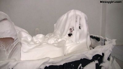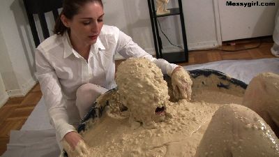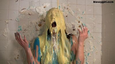 WAM virgin Penelope discovers what it takes to become a Messygirl. She plays the helpless victim as she is pied and slimed, and after a shower is attacked again.