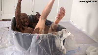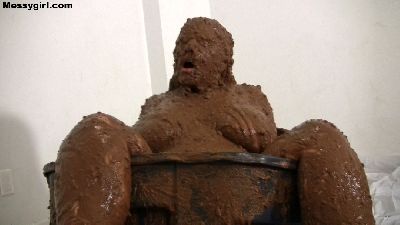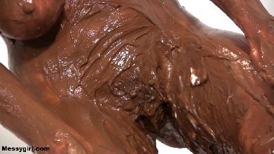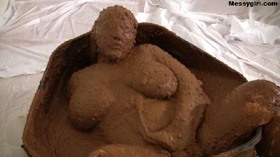 Curvy Vicky strips nude as she settles into a tub full of thick chocolate glop. She submerges herself many times and emerges looking like a sexy human glop monster.