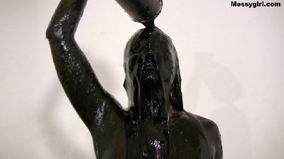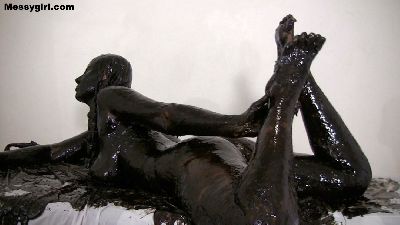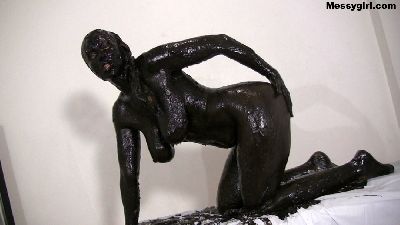 Busty Vassanta covers herself head to toe in black grease and follows that with an oil pour.