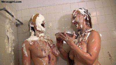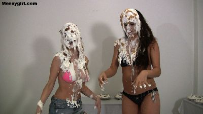Liz and Jasmine are in a heating discussion about who looks best messy. Needless to say a messy tit for tat fight breaks out with pies and batter. The girls do make up and get very naughty in the mess. Very sexy stuff!