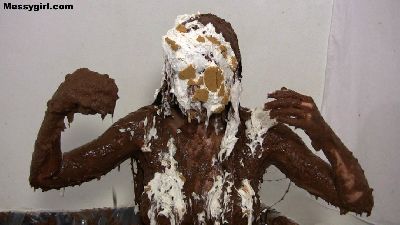 Busty and all natural Vassanta is nude as she is creamed with pies and coated in chocolate.