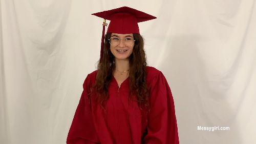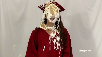 Naughty 18 year old high school senior Tori returns and this time she is graduating in style. She is in her cap and gown as she is destroyed with pies and batter slime. If you saw her first video, you will know she enjoys getting messy and this time she takes it up a notch with much more naughtiness and full exposure nudity.
