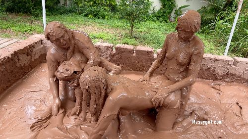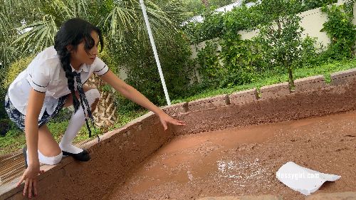 Young schoolgirl Celeste falls into a mud pool that is mixed with an aphrodisiac. She because very aroused as she wallows around and covers herself head to toe.