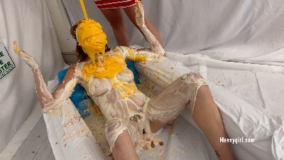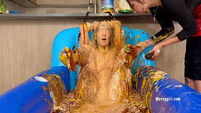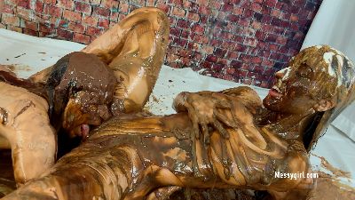 Michelle and Courtney are contestants for the game show called "Share the Mess" where one girls must strip nude and have her friend cover her in as much mess as possible and then she must get covered with the mess on her friends nude body.