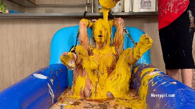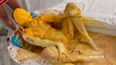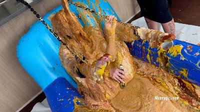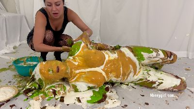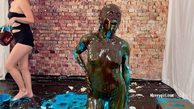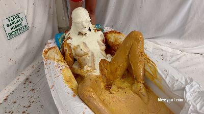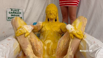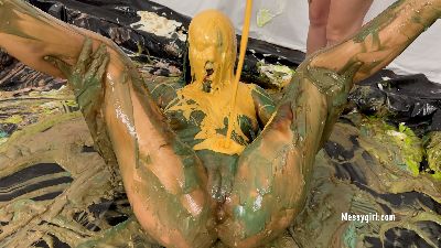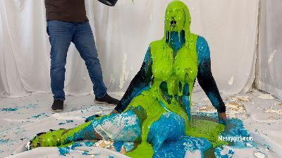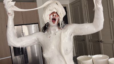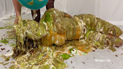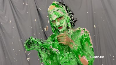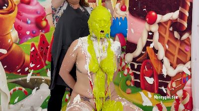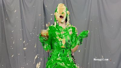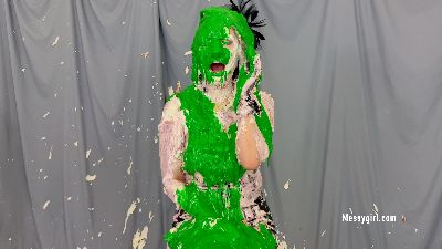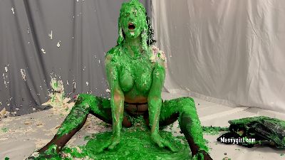 This is by far Dakota's naughtiest solo messygirl shoot. She is pied while twerking and then slimed. She then takes out her vibrator as she is pied and slimed again.