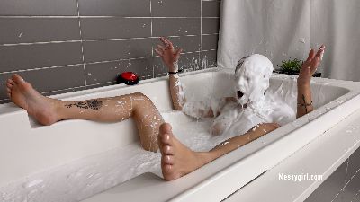 Dakota is enjoying her bath at a fancy hotel when she notices a red button on the side of the tub and pushes it. She finds out that the button releases an endless amount of cream slime from above.