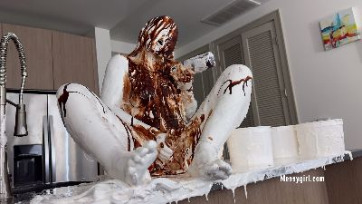 Young Jasmine is down right nasty as she uses a vibrator on herself while covered head to toe in marshmallow fluff and chocolate syrup.
